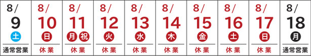 誠に勝手ながら、弊社は8月11日(木・祝)より、休業させていただきます。